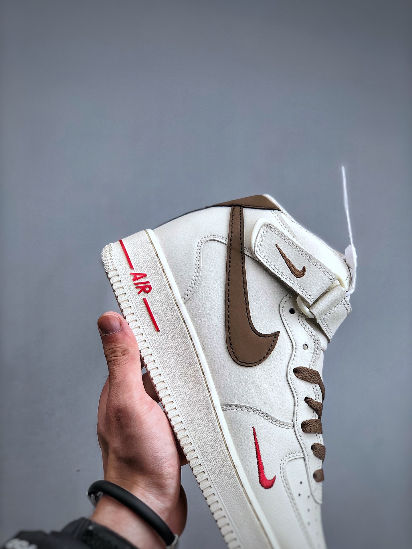 DetailNike air force 1 hi yohood white brown Air Force One middle top casual board shoes Customized leather Original factory 3d printing Customized shoe box Original last Original cardboard Pure air force version Built in full-length air cushion Article No.: 808123 996 size: 36 36.5 37.5 38 38.5 39 40 40.5 41 42 42.5 43 44 45